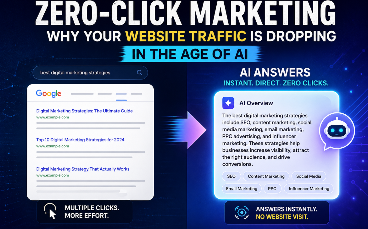 If you’ve noticed a drop in your website traffic recently, you’re not alone. Businesses across industries are experiencing the same shift—and the reason is something many aren’t fully prepared for: Zero-Click Marketing.